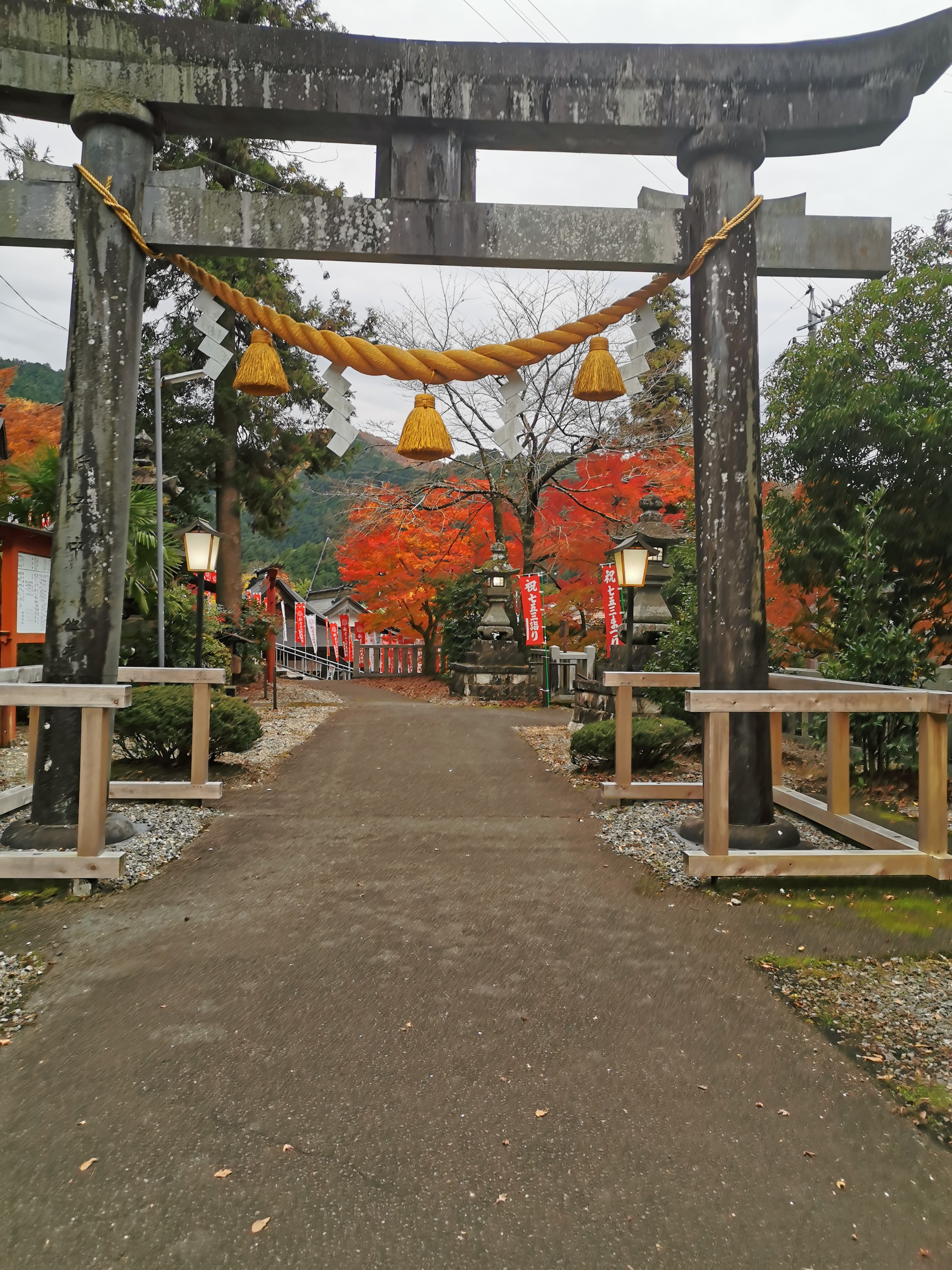After saying goodbye to all the beautiful koi it was only a 5-minute walk from the river to where I came across my first Tori gate. These gates are a symbol of a sacred Shintō shrine. This gate was unlike any I had seen in Kyoto or Tokyo, as this one was not made from wood and painted red. This gate was made from stone and much larger than any I had seen before! I also noticed that the Shinto Shrine at the building had a rope attached to a bell.